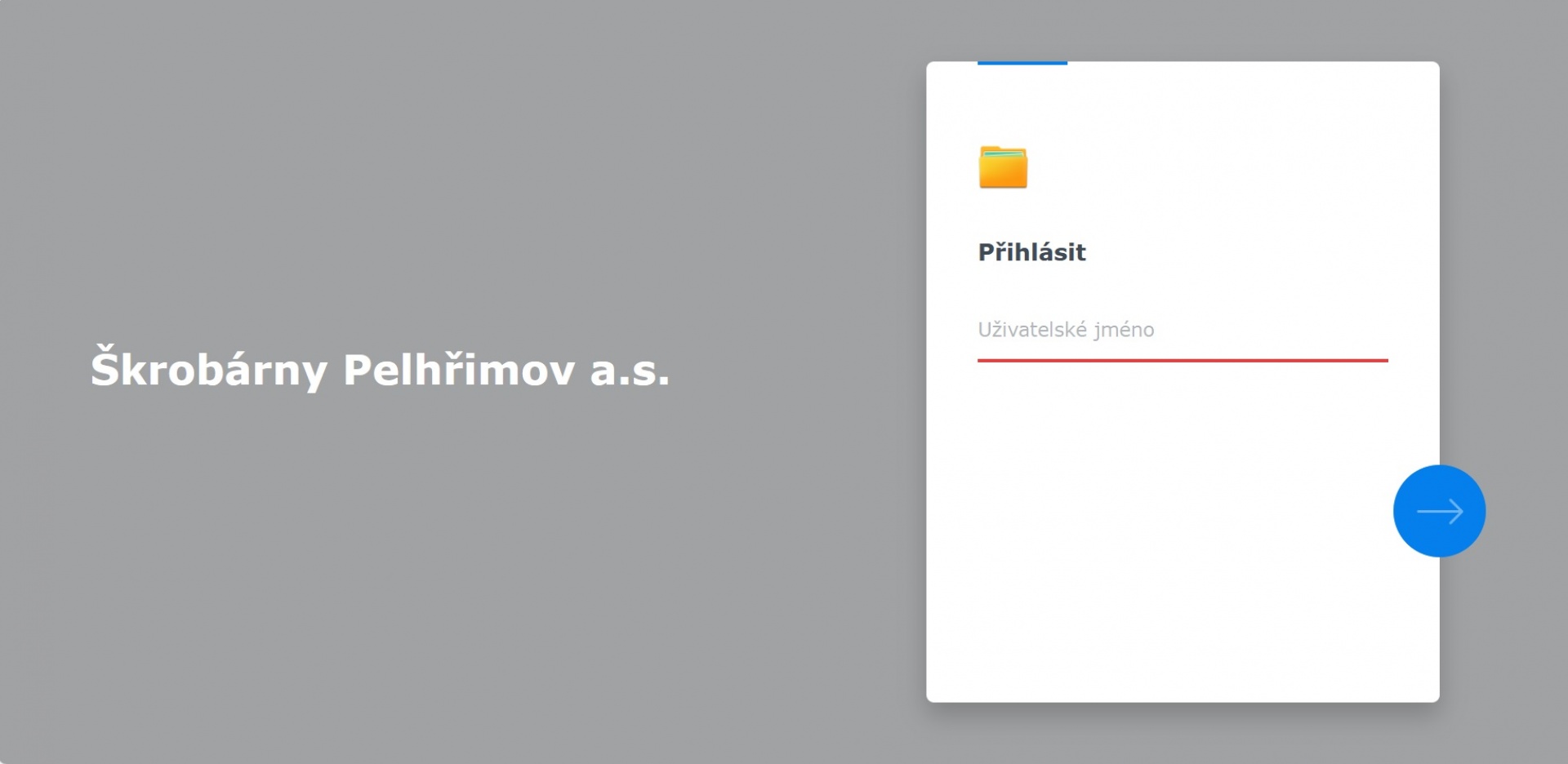Přihlašovací stránka pro zadání uživatelského jména (vzor)