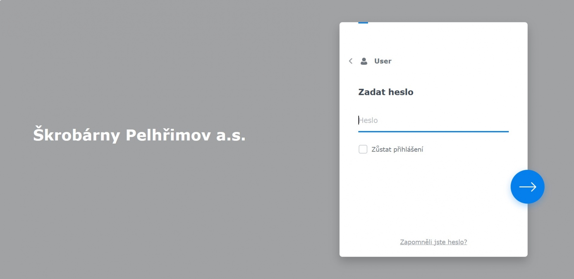 Přihlašovací stránka pro zadání uživatelského hesla (vzor)